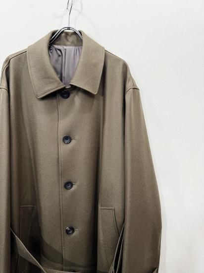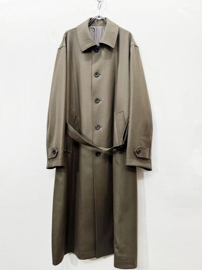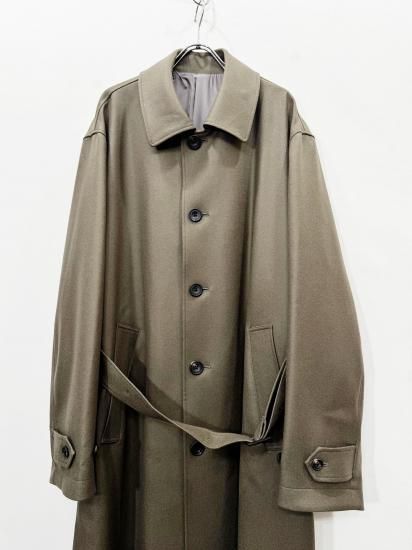 大振りな襟や余裕のあるスリーブなど、シルエットが映える様に極力ミニマルに仕上げたバルマカーンコート。