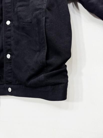 カラーによって生地を変えており、ブラックは通常のデニムよりも細い糸を使用し、特殊な織りで凹凸感を出したブラックデニム生地。