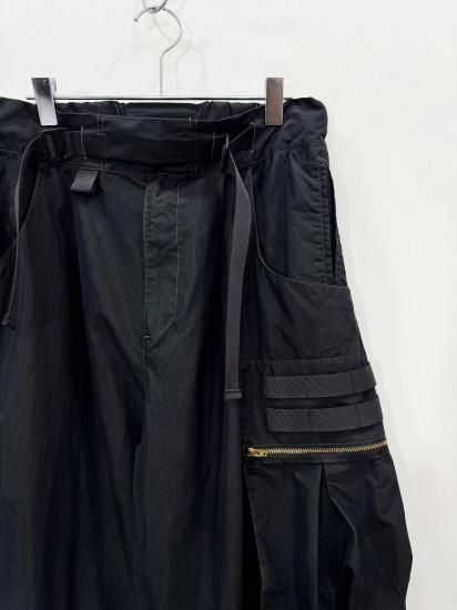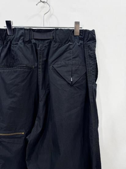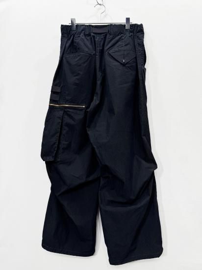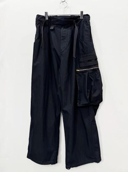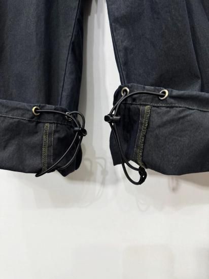 無駄の無いミリタリーというテーマで製作した股上を深めに設定したサルエル風オーバーパンツ。