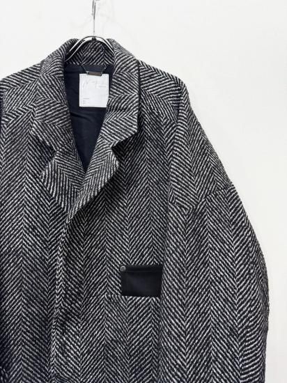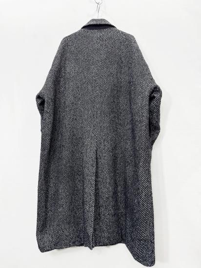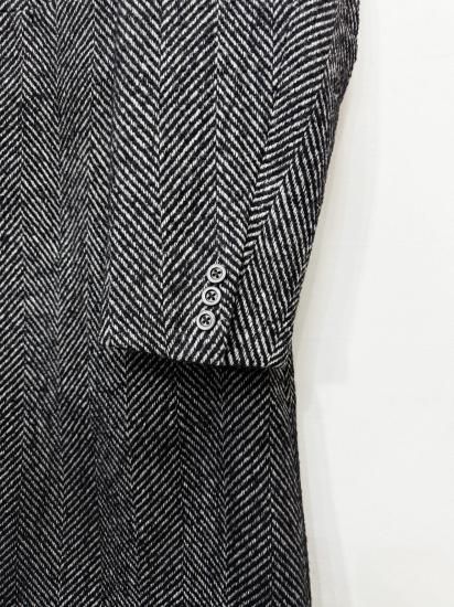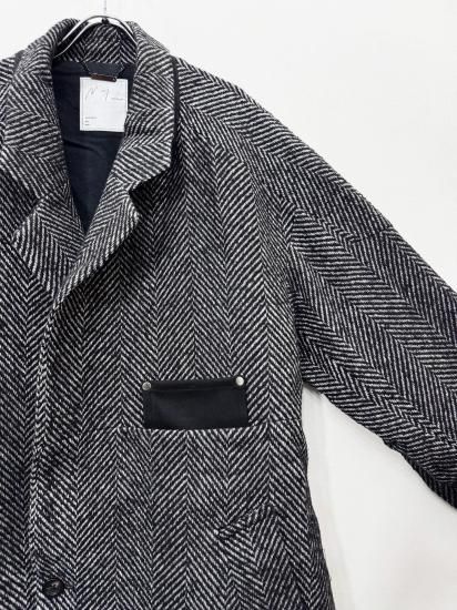 ウールを主体にナイロンとレーヨン、3種の素材を合わせた杢感の強いヘリンボーンデザインのロングコート。