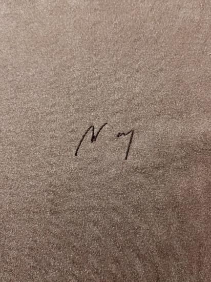 現代アーティストに制作を依頼したブランドロゴを刺繍で配置。