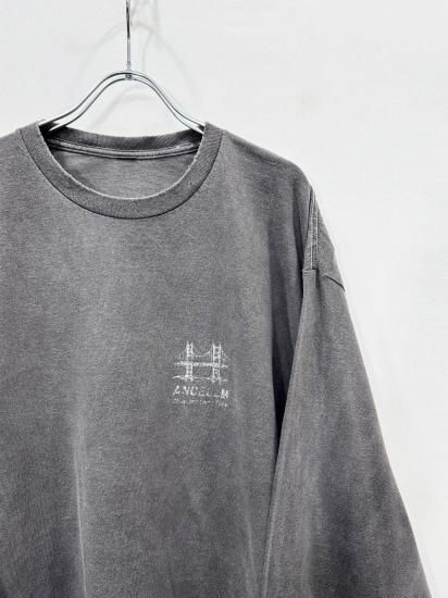 定番で展開しているロゴTシャツをデザインベースに特殊な染めと洗いにより着古したかの様な雰囲気を表現したロンT。